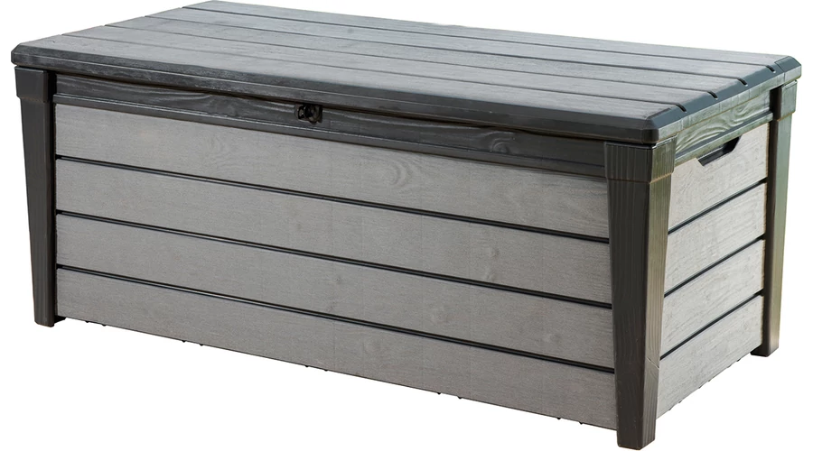 Ebbe a tágas tárolóba, mint amilyen a BRUSH 455 L, nem csak a kézi tartozékok, de a kerti munkálatokhoz elengedhetetlen szerszámok, kerti játékok és szabadidős eszközök is elférnek. Legnagyobb előnye a rendkívül modern, de egyben egyszerű formatervezés és az eredeti jellegű „wood look” felület kialakítás. A láda kinézete megtévesztően hasonlít a természetes fából készült tárolóra. A termék ellenáll a kedvezőtlen időjárási feltételeknek. Könnyű tisztán tartani. 2 személy számára ülőhelyként is szolgálhat. Mérete 145 x 70 x 60 cm. Lapra szerelten, 1 csomagban szállítj