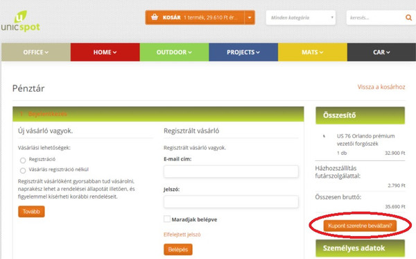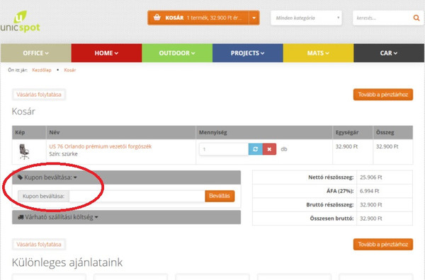 Miután a megvásárolni kívánt termékeket a kosárba helyeztük két lehetőség is van a kupon beváltására: