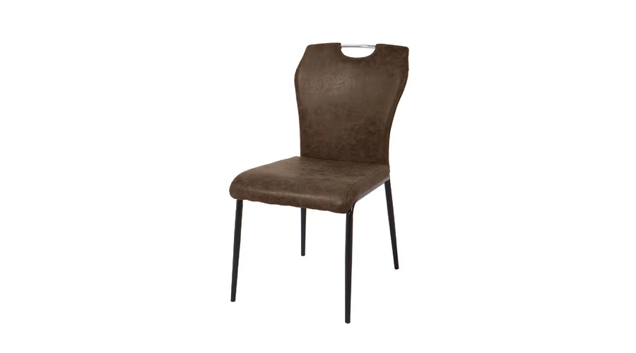 Elegáns megjelenésű, fekete színű fém vázas étkezőszék, textilbőr kárpitozással. Magas háttámlája kényelmes ülést biztosít.