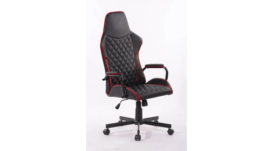 Nagyméretű, karfás, fém csillaglábbal ellátott, PU kárpitozású irodai forgószék. A hintamechanika, a gázliftes magasság állítás igazán kényelmessé teszik, az akár több órás munkavégzést is. A nagyméretű háttámla ergonomikus kialakítása segít a helyes ülő tartás megtartásában, így óvja a gerincet. A piros díszvarrás egyéniséget kölcsönöz a széknek.