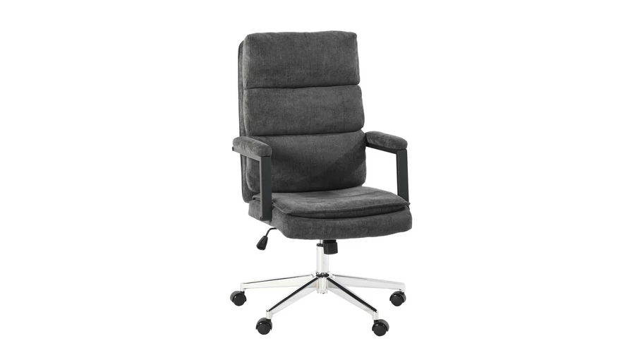 Nagyméretű, karfás, króm fém csillaglábbal ellátott, textil kárpitozású irodai forgószék. A hintamechanika, a gázliftes magasság állítás igazán kényelmessé teszik, az akár több órás munkavégzést is. A háttámla ergonomikus kialakítása segít a helyes ülő tartás megtartásában, így óvja a gerincet.