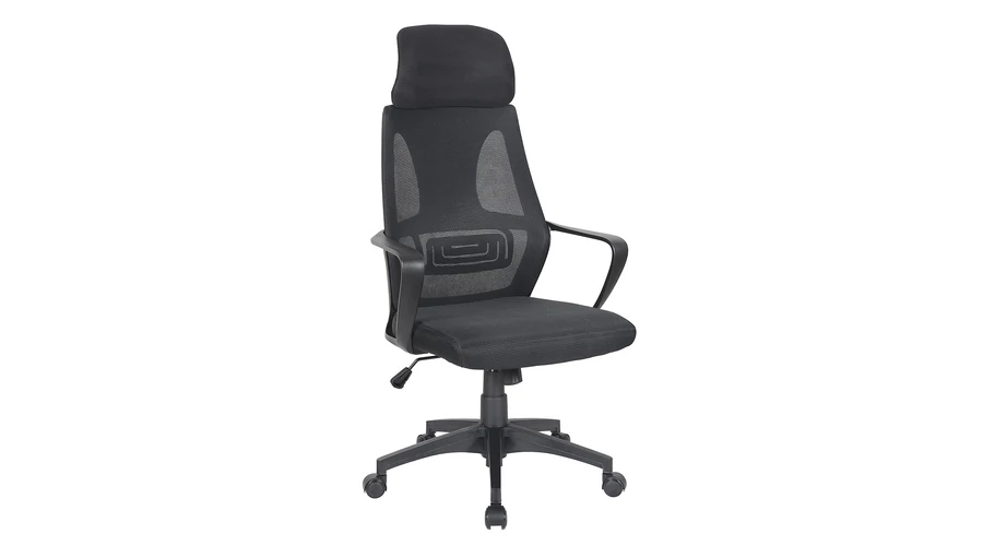 Nagyméretű, karfás, műanyag csillaglábbal ellátott, textil-mesh kárpitozású irodai forgószék. A hintamechanika, a gázliftes magasság állítás igazán kényelmessé teszik, az akár több órás munkavégzést is. A nagyméretű, fejtámasszal is ellátott háttámla ergonomikus kialakítása segít a helyes ülő tartás megtartásában, így óvja a gerincet.