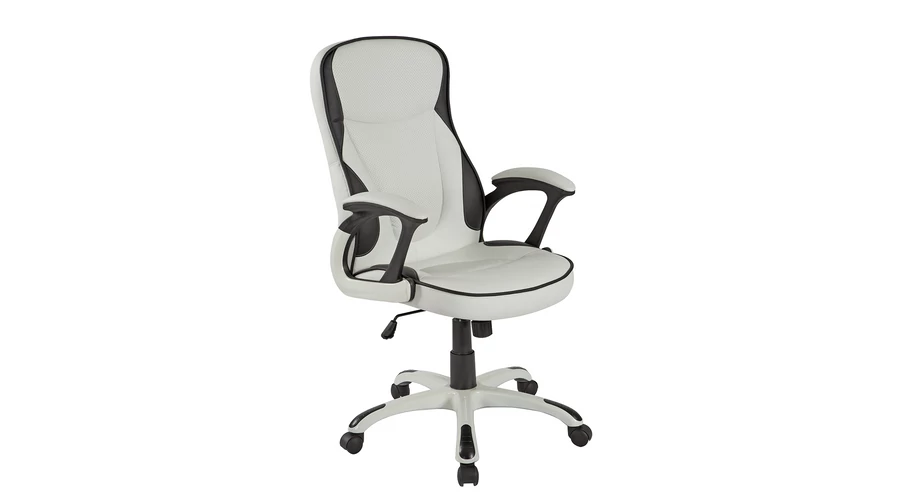Exclusive megjelenésű díszvarrásos, magasháttámlás, kényelmes ülőfelületű főnőki forgószék. Puha műbőr ülőfelület és karfa. Beépített hinta mechanikával és gázliftes magasságállítással.